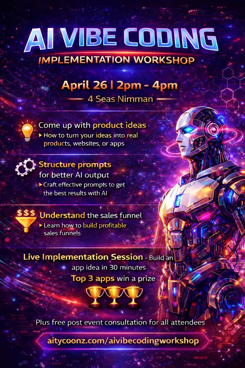 Join The Free AI Vibe Coding Implementation Workshop To Learn How To Vibe Code, & Publish Your Own AI App, Software, or Website In 2 Hours Without Being A Programmer